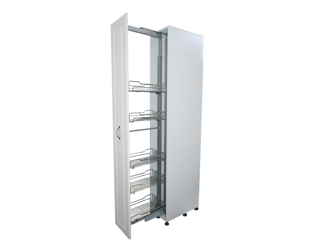 Materiale folosite: Pal melaminat, usi din MDF infoliat, manere metalice cu insertie portelan, , cadru metalic Dispensa, cos Dispensa ,picioare reglabile plastic 100 mm.