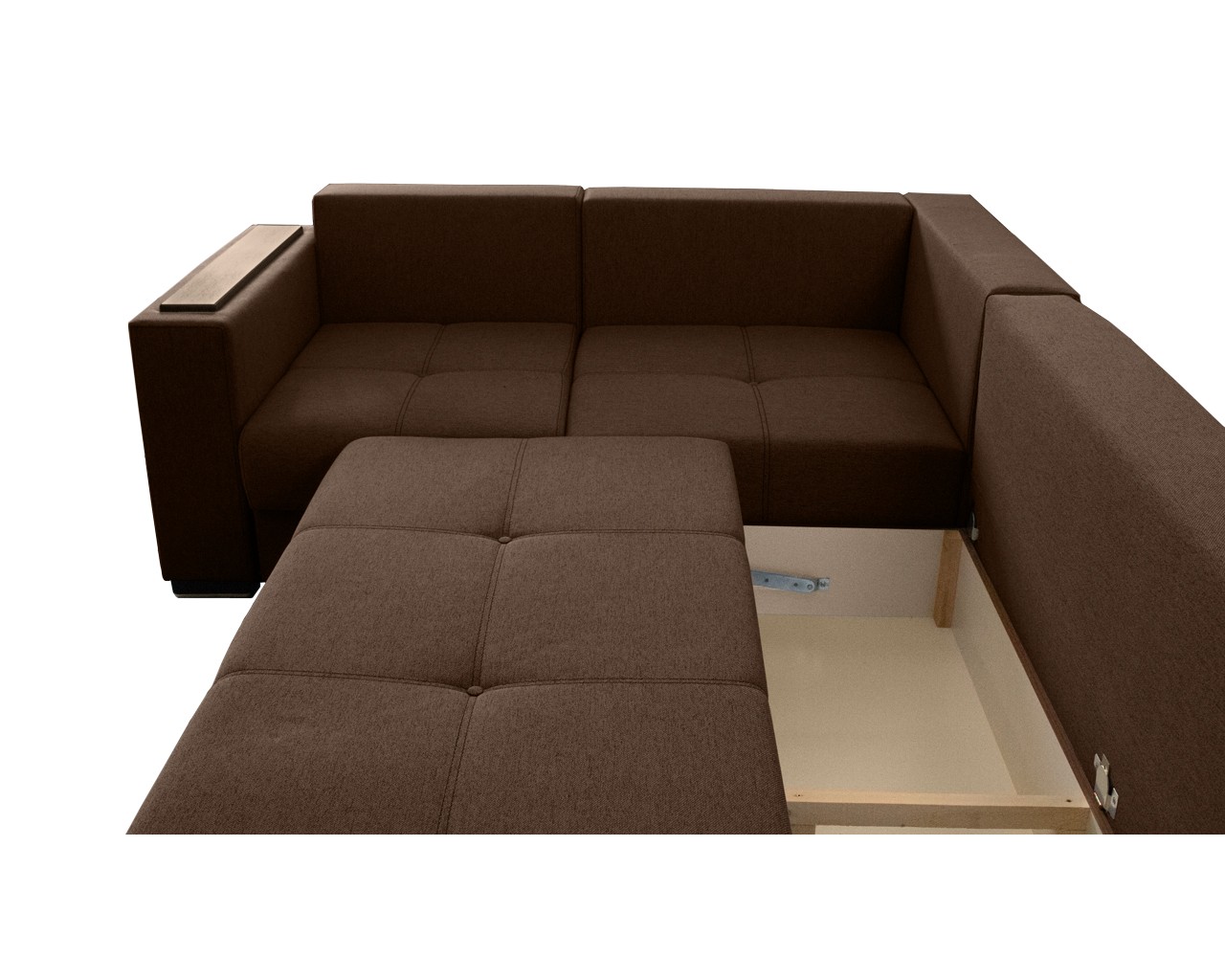 Pe bratele coltarului se afla ornamente din MDF wenge care pot fi folosite ca suport pentru pahare.