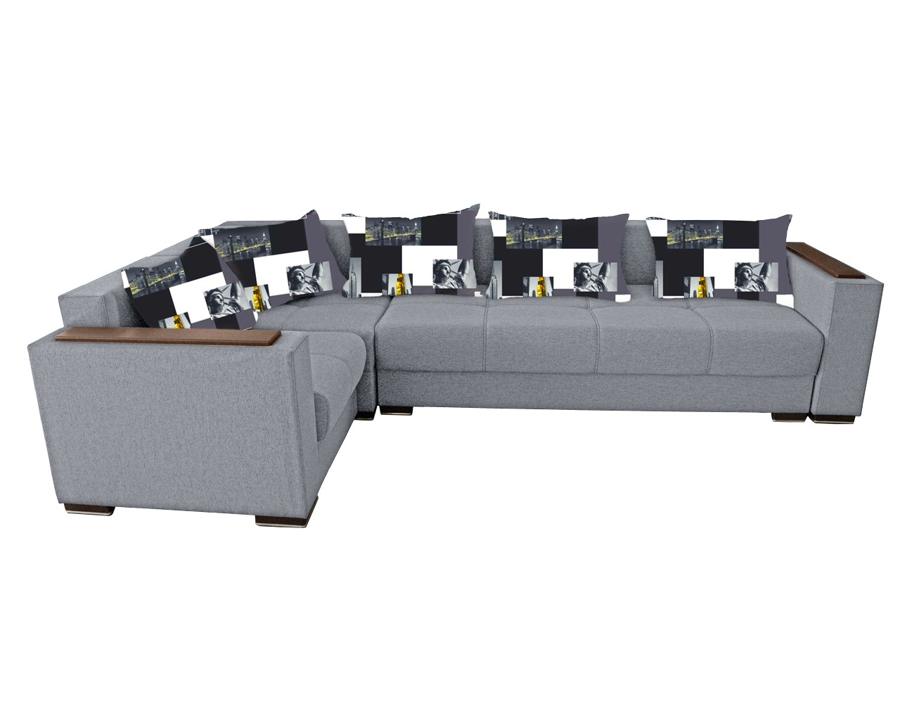 Pe bratele coltarului se afla ornamente din MDF wenge care pot fi folosite ca suport pentru pahare.