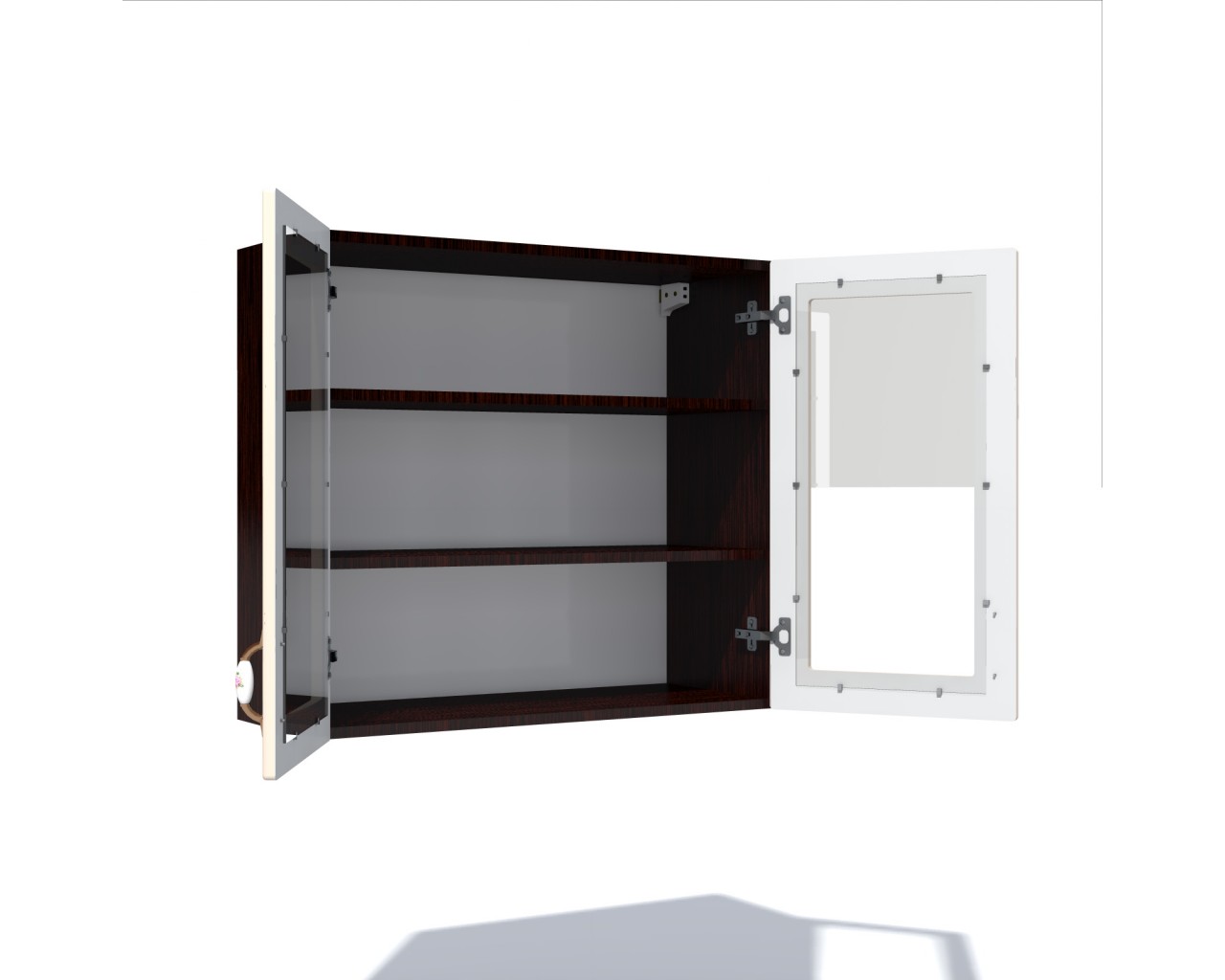 Materiale folosite: Pal melaminat, usi din MDF infoliat, manere metalice cu insertie portelan, balamale cu piston (inchidere soft close) , sticla.