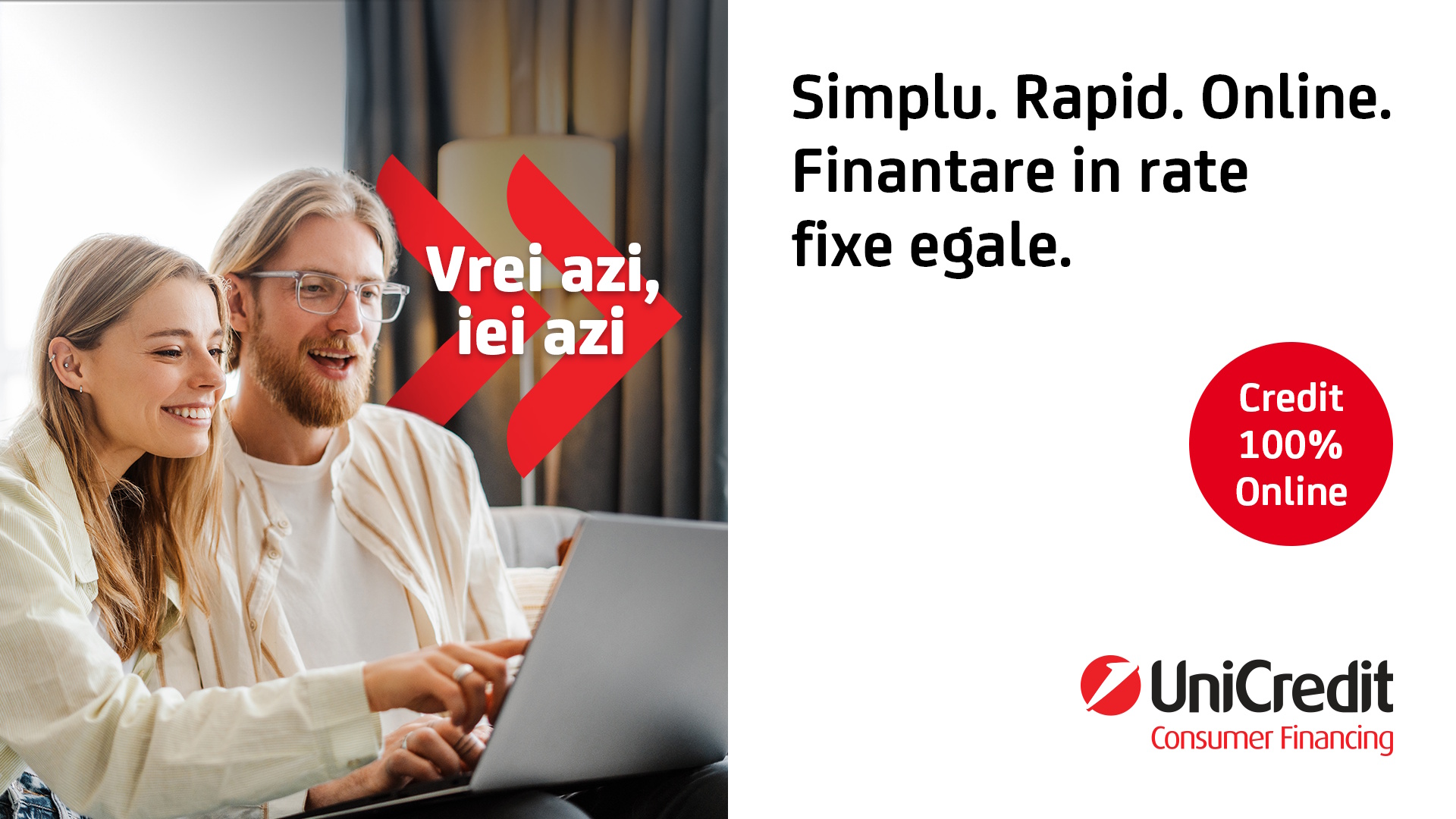 Prezenta nu valorează, conform legii, oferta de a contracta produse/servicii financiare din partea UniCredit Consumer Financing IFN S.A., putând fi modificată sau revocată în orice moment. Conform legii, oferta de produs sau serviciu financiar este cea valabilă la momentul înregistrării solicitării produsului/serviciului și independent de elementele respectivei oferte, contractul se consideră încheiat numai la data semnării sale formale sau, după caz, conform prevederilor legale aplicabile încheierii contractului la distanta.
