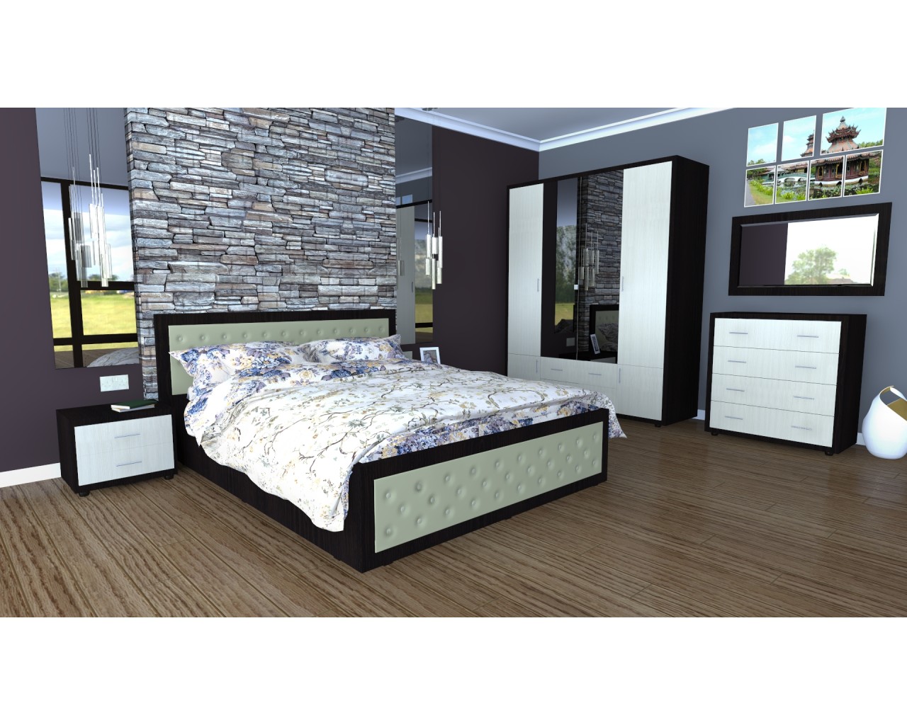 Dormitorul Torino reprezinta o alegere eleganta datorita aspectului deosebit si practica datorita multiplelor spatii de depozitare. Dormitorul este compus din dulap cu 6 usi si 2 sertare, comoda cu 4 sertare, pat cu somiera metalica rabatabila si lada pentru saltea de 140 x 200 cm si 2 noptiere cu cate 2 sertare.