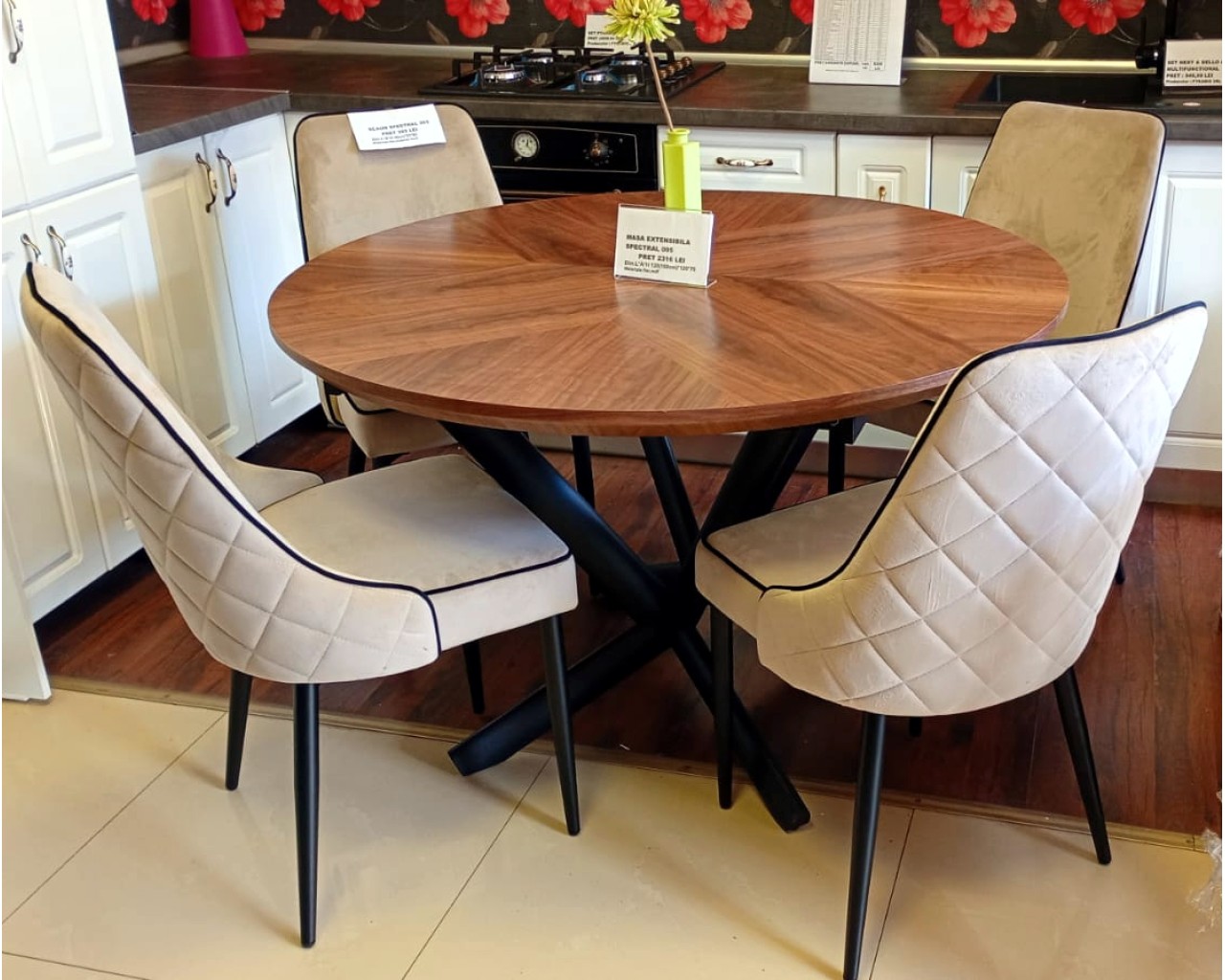 Etichete: masa, extensibila, living, sufragerie, dining, cadru, metal, fier, blat, mdf