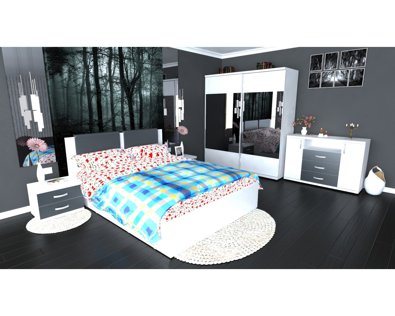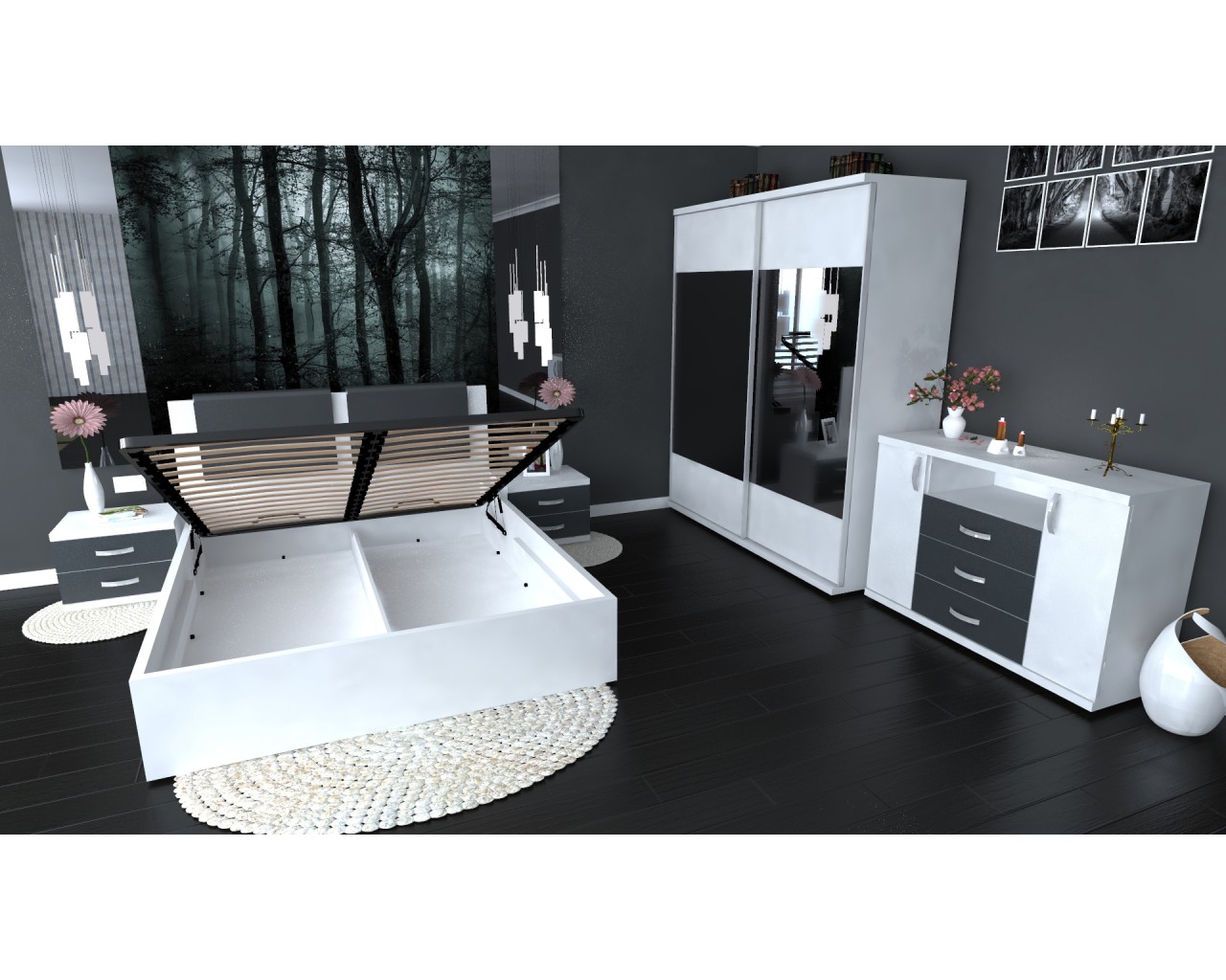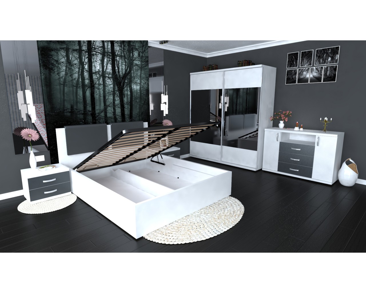 Etichete: Dormitor Laguna cu pat 160x200 cu lada Alb cu Gri, Dormitoare Set, Mobilier Dormitor