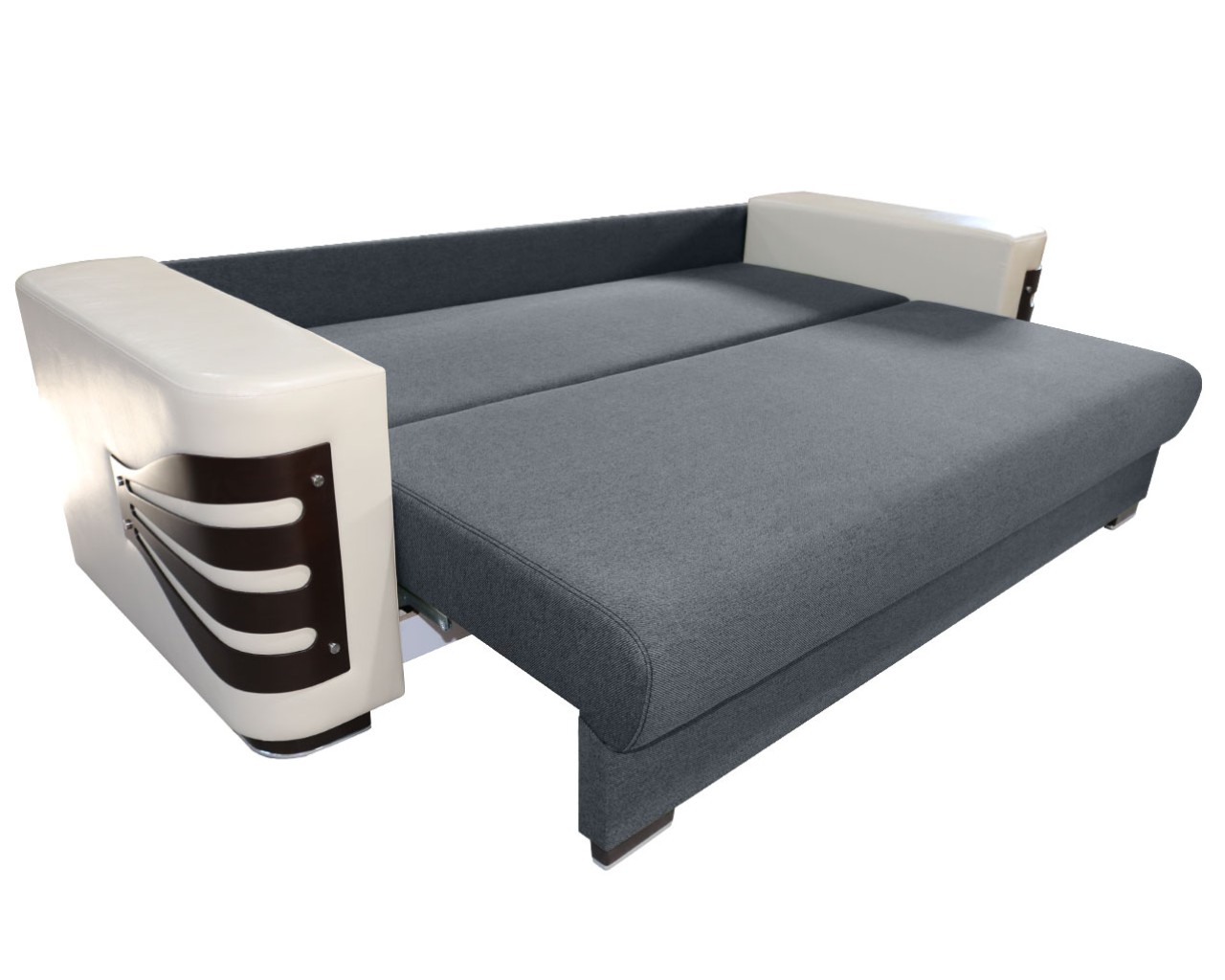 Canapeaua Madeira are saltele cu plasa de arcuri (tip Relaxa) si burete de densitate mare pentru o rezistenta sporita in timp, iar datorita suprafetei plane care se formeaza atunci cand se extinde asigura un somn odihnitor pe timpul noptii. Atat canapeaua cat si pernele sunt tapitate cu stofa.