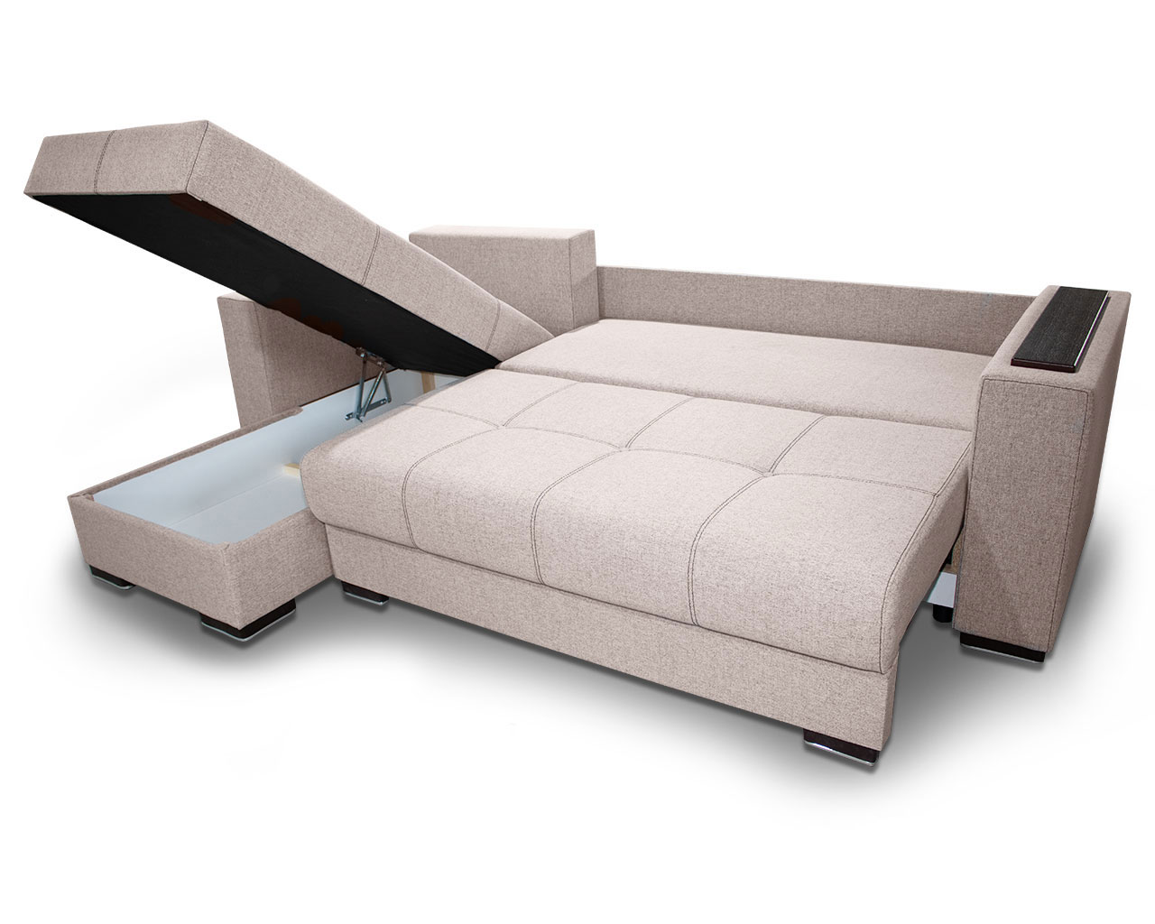 Coltarul Solis are saltele cu plasa de arcuri (tip Relaxa) si burete de densitate mare pentru o rezistenta sporita in timp, iar datorita suprafetei plane care se formeaza atunci cand se extinde asigura un somn odihnitor pe timpul noptii. Atat coltarul cat si pernele sunt tapitate cu stofa.