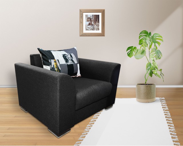 Fotoliul Lindo are saltea cu plasa de arcuri (tip Relaxa) si burete de densitate mare pentru o rezistenta sporita in timp. Atat fotoliul cat si perna sunt tapitate cu stofa.