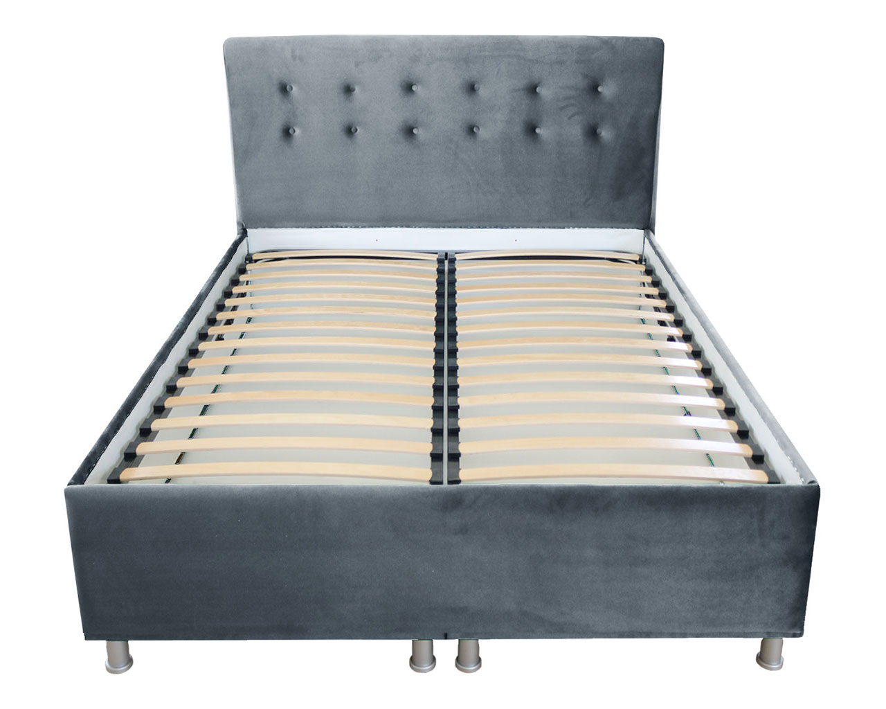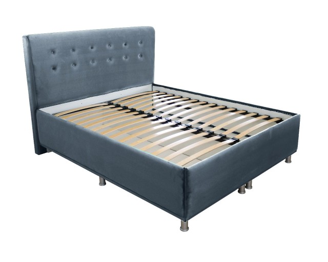 Patul pentru saltea de 140x200 cm este fabricat din PAL melaminat cu grosimea de 18 mm si este tapitat integral cu burete si stofa. Patul are o lada foarte spatioasa, ideala pentru depozitat lenjerii sau chiar obiecte mai voluminoase si grele, avand fundul foarte solid. Accesul la lada este foarte facil datorita somierei metalice rabatabila pe pistoane, aceeasta oferind totodata si un suport foarte solid pentru orice tip de saltea. Patul este pe picioare de 10 cm inaltime asigurand astfel o buna circulatie a aerului pe sub pat, dar si posibilitatea de a se aspira cu usurinta sub pat. Tablia de la cap are un aspect deosebit datorita nasturilor tapitati si a stratului gros de burete de pe tablie, asigurand un confort sporit atunci cand se sta in pozitie de citit sau privit la televizor. Dimensiunile exterioare ale patului sunt 150 cm latime, 112 cm inaltimea tabliei de la cap si 216 cm lungime.