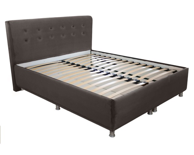 Patul pentru saltea de 160x200 cm este fabricat din PAL melaminat cu grosimea de 18 mm si este tapitat integral cu burete si stofa. Patul are o lada foarte spatioasa, ideala pentru depozitat lenjerii sau chiar obiecte mai voluminoase si grele avand fundul foarte solid. Accesul la lada este foarte facil datorita somierei metalice rabatabila pe pistoane, aceeasta oferind totodata si un suport foarte solid pentru orice tip de saltea. Patul este pe picioare de 10 cm inaltime asigurand astfel o buna circulatie a aerului pe sub pat, dar si posibilitatea de a se aspira cu usurinta sub pat. Tablia de la cap are un aspect deosebit datorita nasturilor tapitati si datorita stratului gros de burete de pe tablie, asigurand un confort sporit atunci cand se sta in pozitie de citit sau privit la televizor. Dimensiunile exterioare ale patului sunt 170 cm latime, 112 cm inaltimea tabliei de la cap si 216 cm lungime.