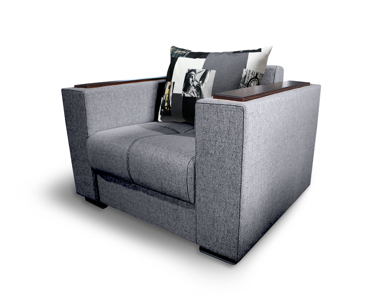 Pe bratele fotoliului se afla ornamente din MDF wenge care pot fi folosite ca suport pentru pahare.